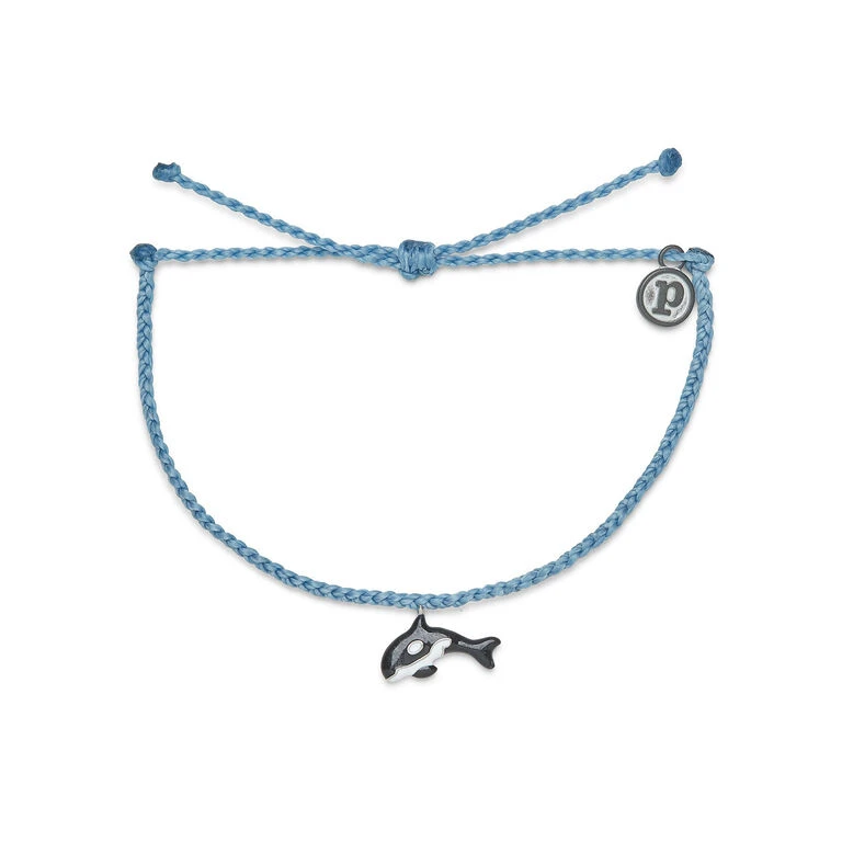 - Pura Vida sky blue braided string bracelet with Orca charm accent.